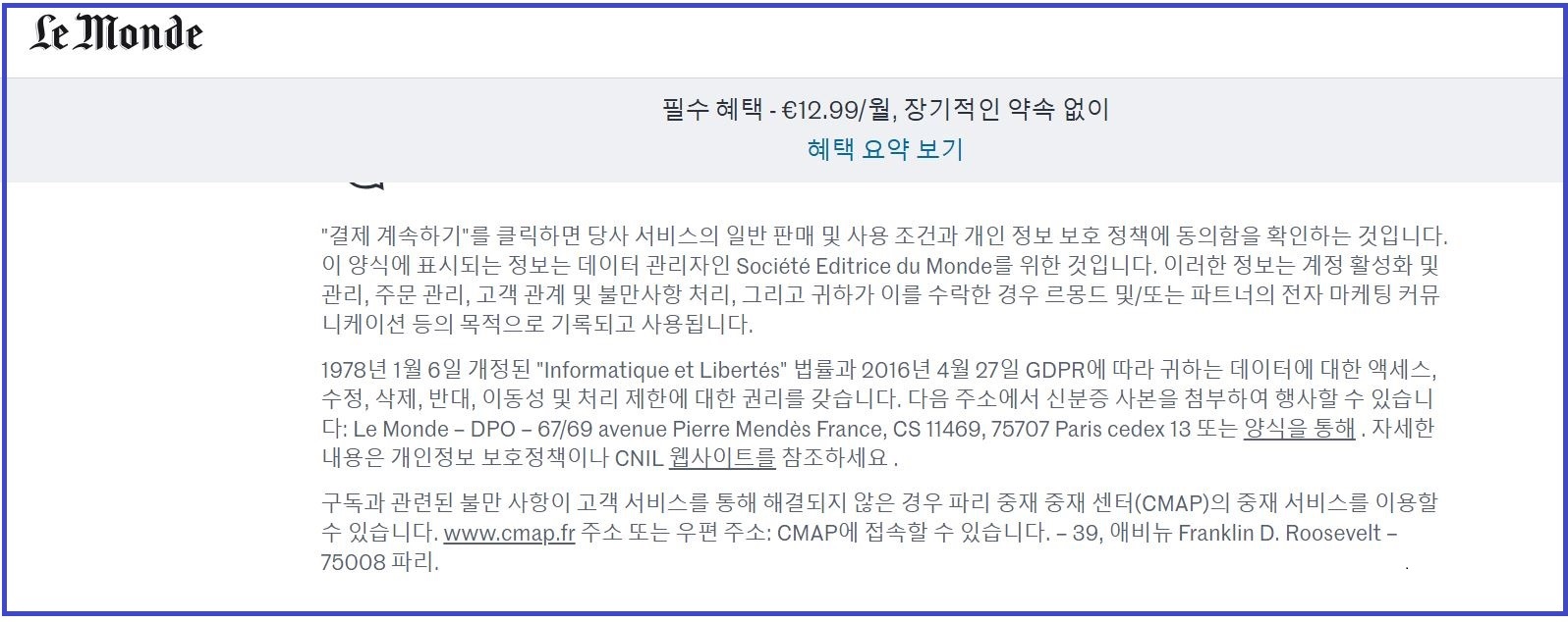 이렇게, 프랑스어 사이트도 순식간에 번역이 됩니다.