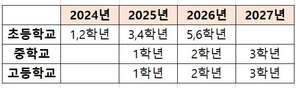 2025년도에 3,4학년이 되는 아이들 (2024년 현재 초등 2, 3학년 학생)은 2025년부터