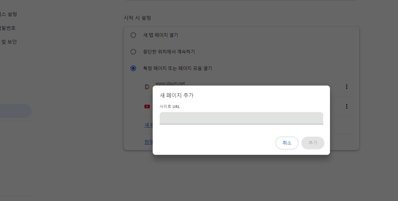 첫 페이지에 나왔으면 하는 사이트 주소를 적어줍니다.