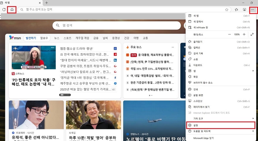 이번 포스팅에서는 <엣지 브라우저>에서 홈버튼을 보이도록 설정하는 방법에 대해 알아보겠습니다.