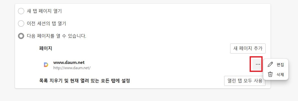 그런데 내가 자주 방문하는 페이지가 여러 개라서 동시에 다 떴으면 좋겠다면, 다시 <새페이지 추가>를 눌러서 여러 개의 페이지를 추가할 수 있습니다.
